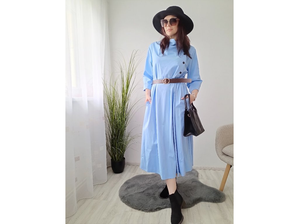 Dlouhé šaty Esme s páskem. V horní části zapínání na knoflíky.Na bocích praktické kapsy. Sukně áčková.